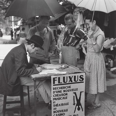 I tend to favor the sculptural works over the interactive and performance pieces. The performance art aspect splintered off into what is known as Happening, a separate art style I can’t get into right now as this post is already too long. Essentially, it can be summed up as rich people feigning intellectual and cultural awareness, yelling and acting insane in public for art's sake [which sadly is also very quintessential to the sixties]. Suffice it to say, Fluxus is one part really cool conceptual art, one part loud pretentious assholes. Then again, isn’t that always the way?