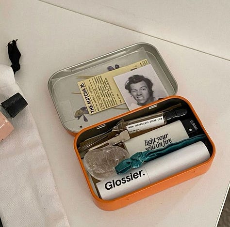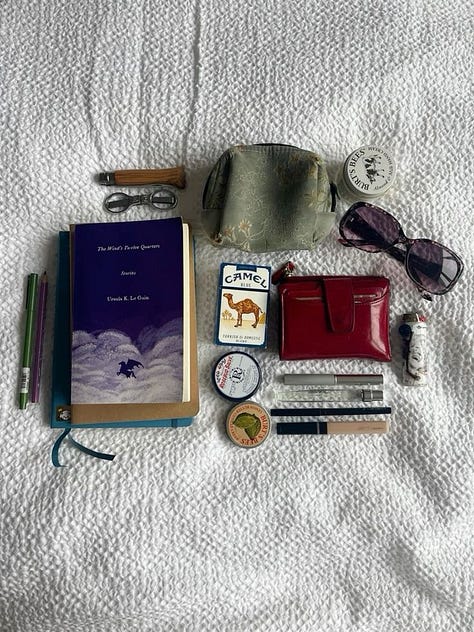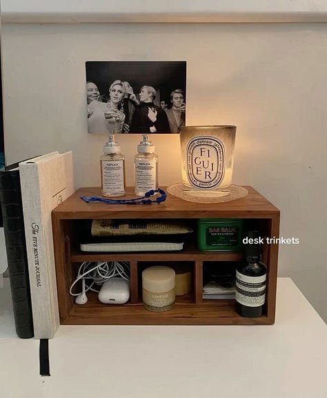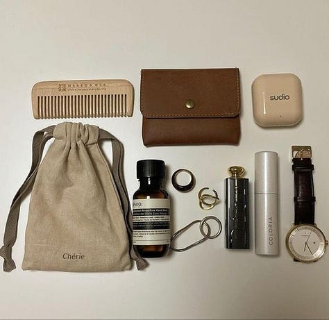 I think the main thing that made me look at this and go Fluxus is that it’s taking back power from influencers—the link-in-bio-run-don’t-walk overconsumption types. Contemporary Fluxus Girlies are not trying to sell you anything. Yes, these videos are materialistic in that they are centered around object fetishization, but the purpose of the objects are twofold: to promote individuality and to help create community. These Contemporary Fluxus Girlies [everyday I can just say words and no one can do anything about it] are trying to connect with kindred spirits who share the same affinity for vintage leather pouches and Burt’s Bees Lip Balm.